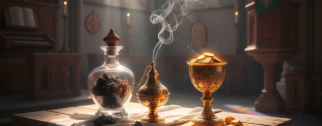 Myrrhe – sie wird im Orient gebraucht, um Verstorbene einzubalsamieren. Damit kann ein Kind natürlich erst recht nichts anfangen, das wirkt geradezu makaber. Aber wenn die hochrangigen Fremden zusammen mit Gold und Weihrauch auch Myrrhe mitbringen, dann bekennen sie: Unser Gott, der Herrscher der Welt ist sterblich geworden, um seinen Kindern nahe zu sein.