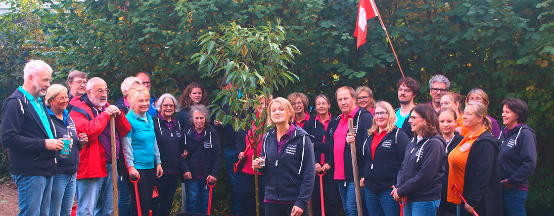 Als Jubiläumsgeschenk haben wir beim Freundschaftsabend einen schönen Maronenbaum überreicht bekommen, der für diese Challenge wie gemacht war. So mussten wir uns um die Auswahl und Beschaffung dessen schon mal nicht mehr kümmern, sondern nur noch den ca. 2,50 Meter hohen Baumsetzling in unserem Reisebus unversehrt nach Hamburg schaffen.
